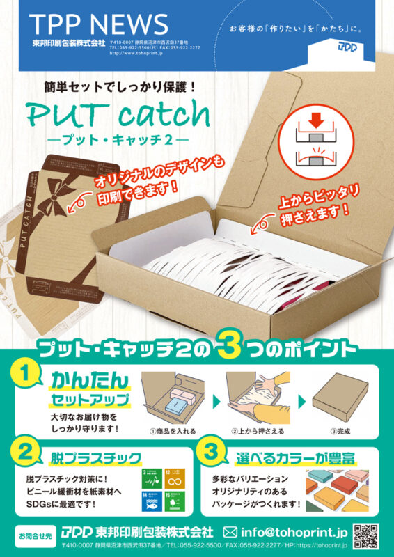 プット・キャッチは、段ボール素材でできた仕切りで、荷物を上から押さえて守る役割を果たします。